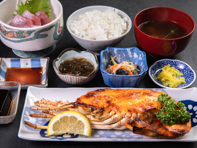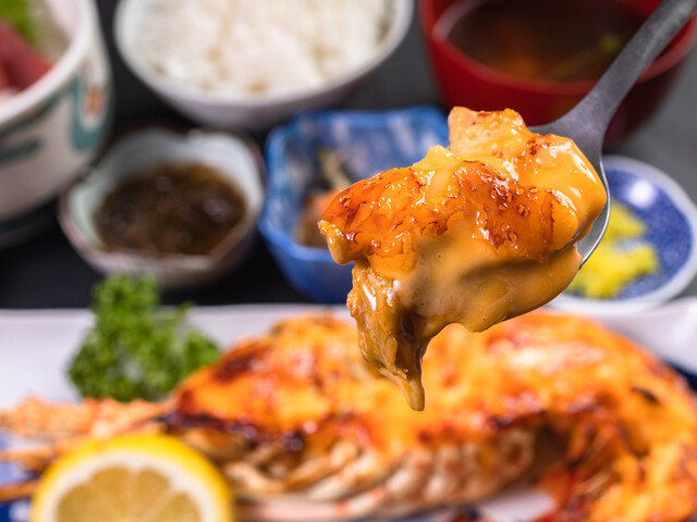 新鮮な魚介類を定食スタイルで気軽に食べられることもあり、地元の方から観光客まで多くの人が訪れています。オススメは、自家製のウニソースを伊勢海老にたっぷり塗って焼きあげた『伊勢海老ウニ焼定食』。伊勢海老は半身を使用しており、見た目が豪華でボリュームも満点!近場には、ホエールウォッチングできる施設や釣りのスポットなど観光や遊べる施設がいっぱい!家族やデート、友人と一緒に車を走らせてみませんか?