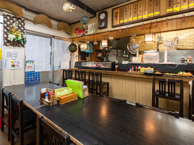 那覇市漁協の直営店。鮮度抜群の魚介を楽しめる、海鮮料理専門の街の食堂