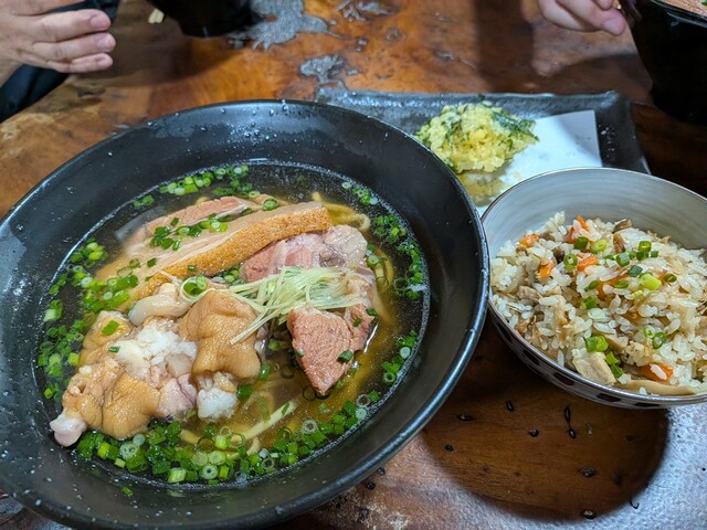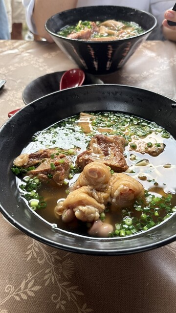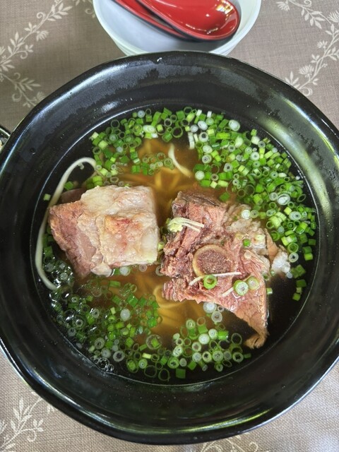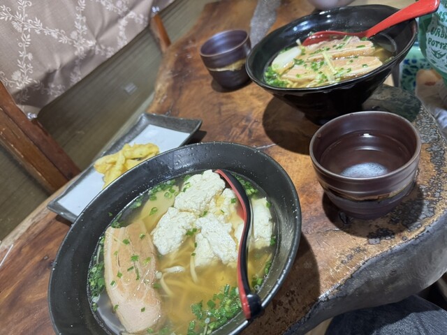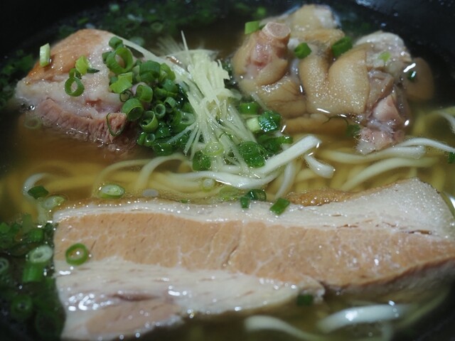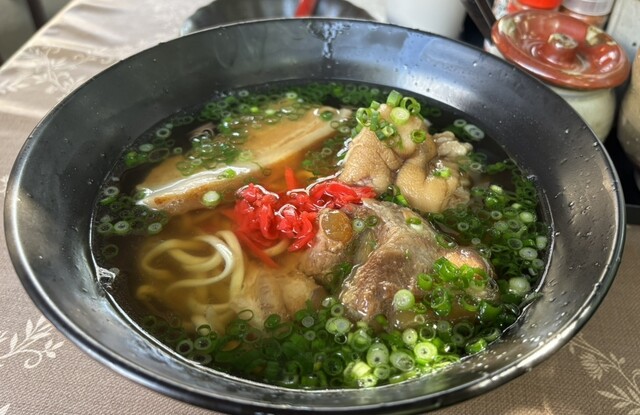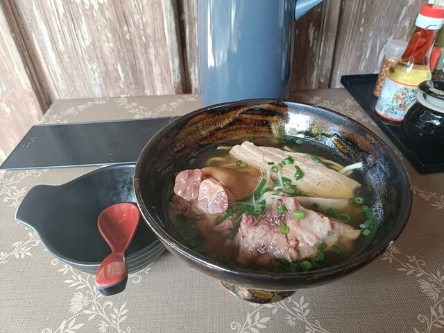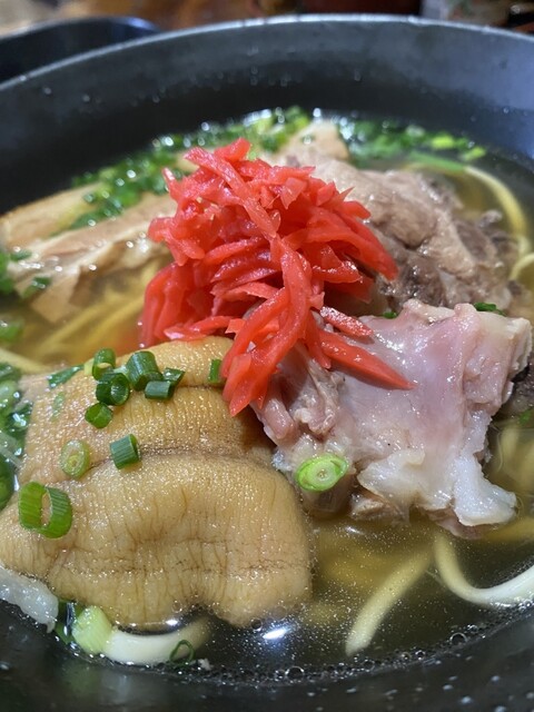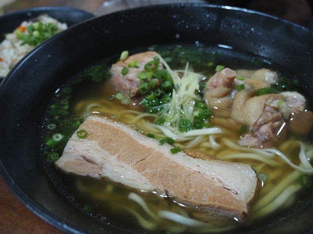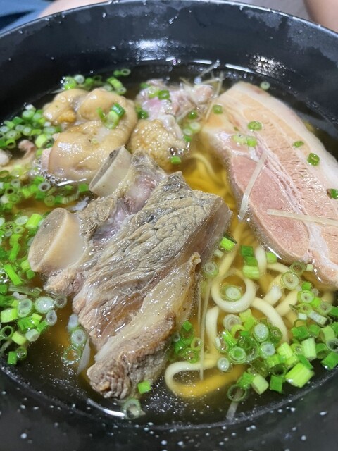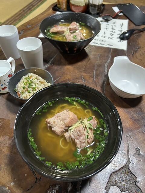 出汁が本当に美味しくて、ぐびぐび飲んでしまいました。私は沖縄そば、連れはソーキそばを注文しました。ソーキそばにはじゅーしいも付いてきました。14時半頃向かったので、全く混んでなくスムーズに入れました。