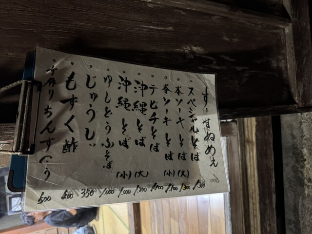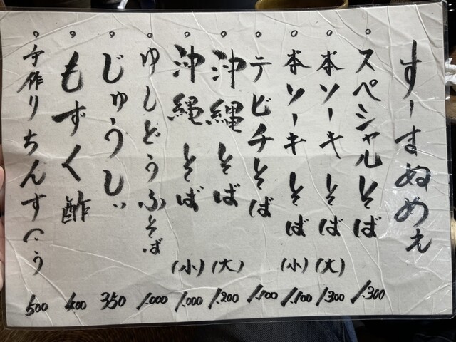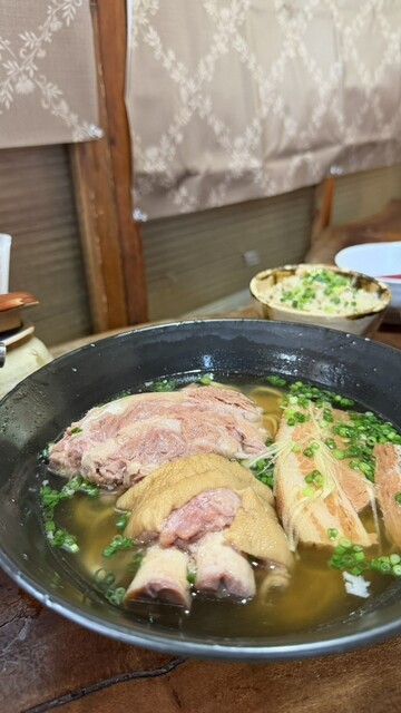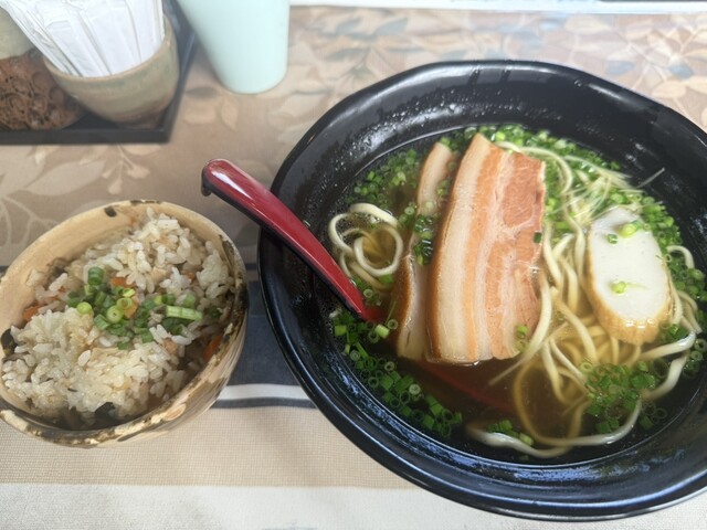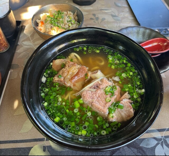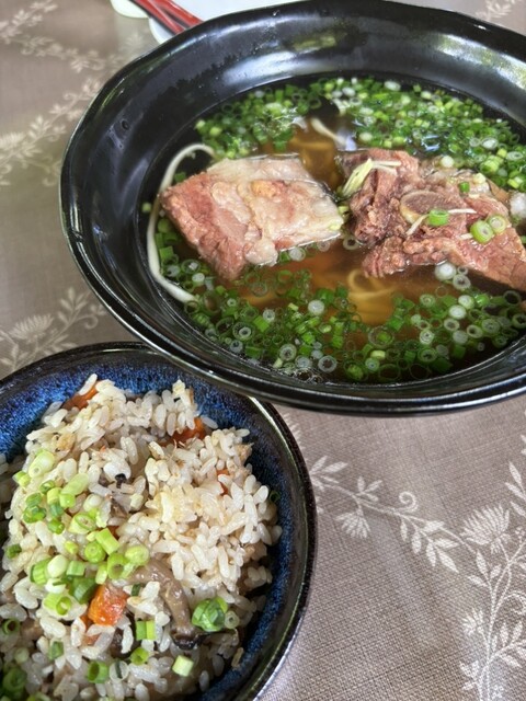 ソーキそばの小、じゅうしぃを注文。そば系は小と大がありますが、...