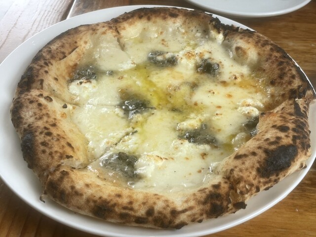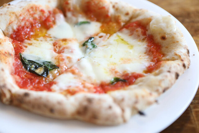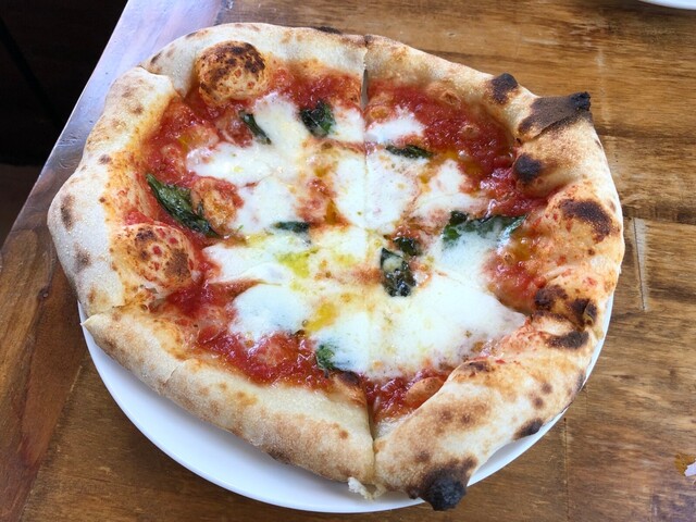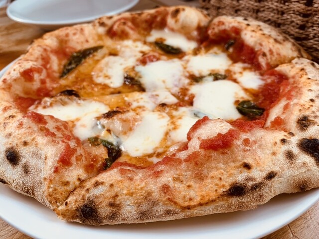 石窯焼のピザはもっちりふんわり、みみはパリッとしています。