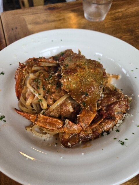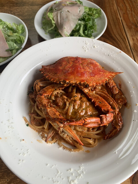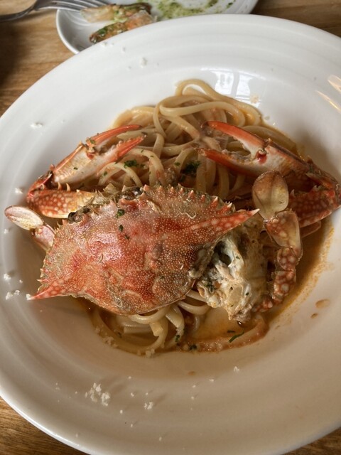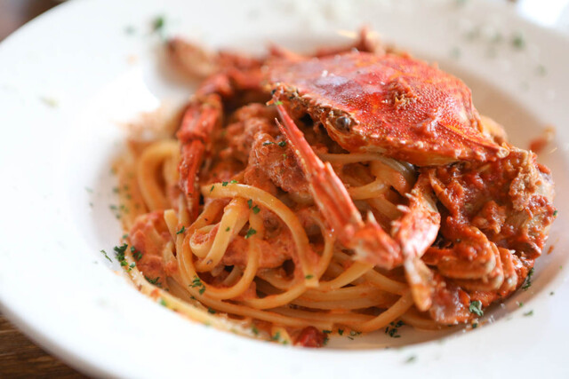 わたり蟹のトマトクリームソース リングイネは、カニの旨味がたっぷりの濃厚なソースが平麺のパスタによく絡んでおいしかった!