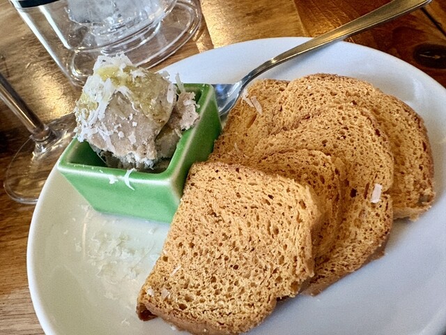 渡り蟹のクリームパスタとビスマルクをセレクト、メインのお肉は豚のローストでした。