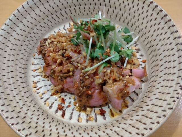 豊富なお酒や、一工夫を加えた斬新な料理が自慢な【酒場感】。「手羽仔羊の餃子」や「マグロのレアカツ」など、人気メニューが1度に楽しめるお得なコースもご提供しております◎またドリンクも豊富で、沖縄では珍しい純米酒や燗酒を中心とした日本酒を40種類以上ご用意しました。全16席のオシャレな店内は、カウンターとテーブル席を完備し、貸切にも対応しております。各種宴会やデートなど、幅広いシーンでお使いください♪