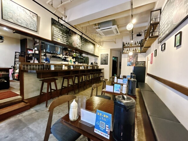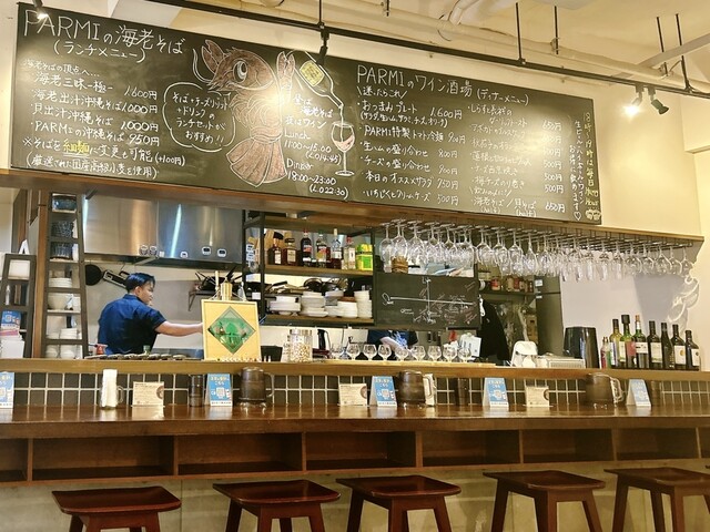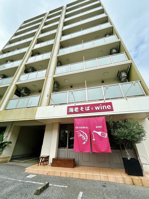 「沖縄県」那覇市おもろまち4-19-27 ハレスプラウト 1Fに有る〜夜はワイン、昼は映え映えの海老ラーメンのお店ですヨ♪