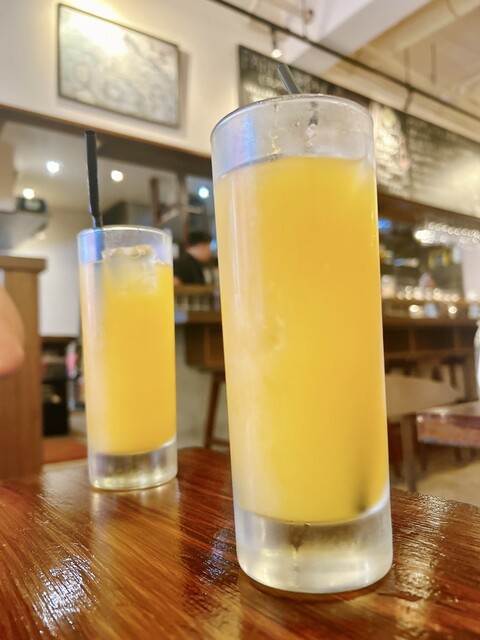 先にセットのオレンジジュースが提供されます。