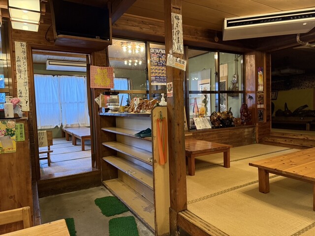 沖縄民謡が流れ、ゆったりした雰囲気。
