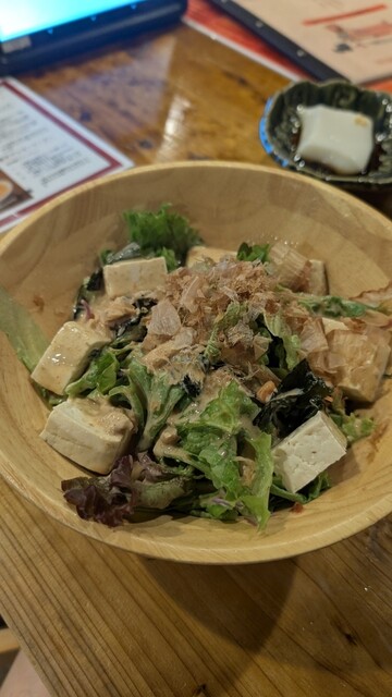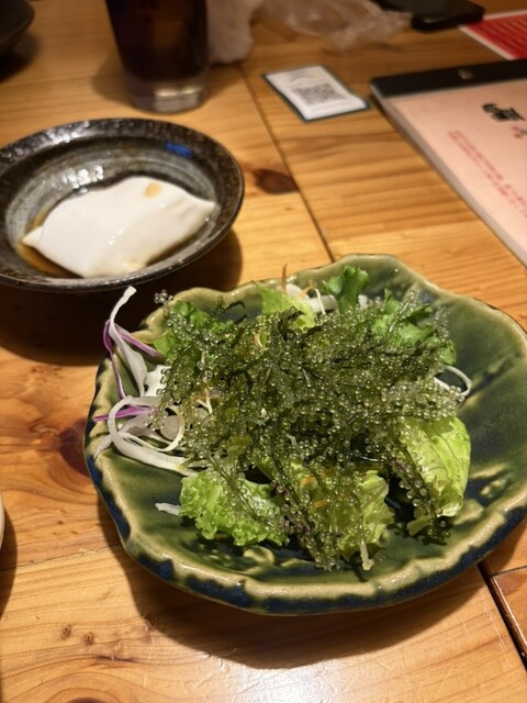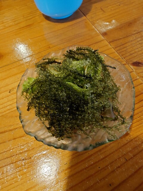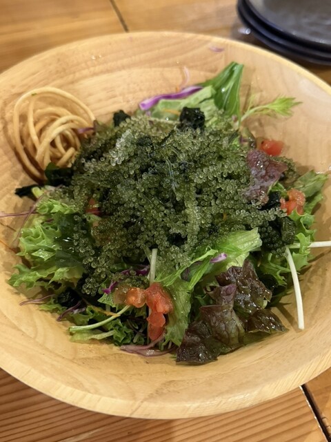 写真はないけど、アオサのソーキそばが過去一美味しかったです!(写真は海ブドウサラダのみ)