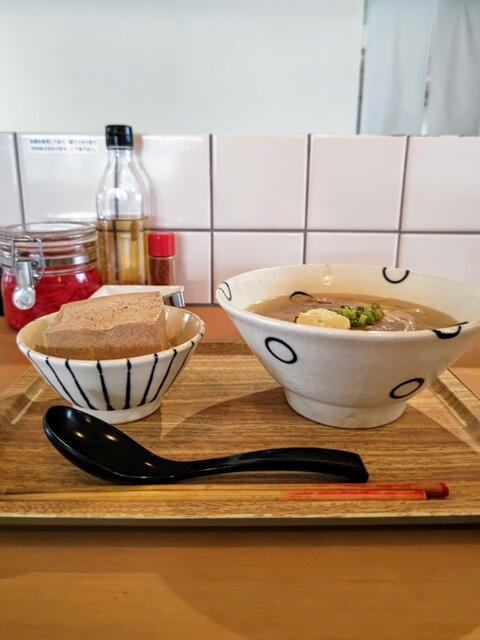 許田ICを降りて車で10分ほど。 名護の繁華街から少し外れた場所にある沖縄そば屋さん。 駐車場が分かり難く、お店の裏にあります。 車を停めて、裏口から店内へ。 ... 詳細を見る