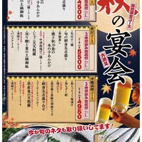 【3時間飲み放題付】秋の宴会プラン!全国各地から仕入れる鮮魚と旬食材を愉しむ「贅沢コース」9品