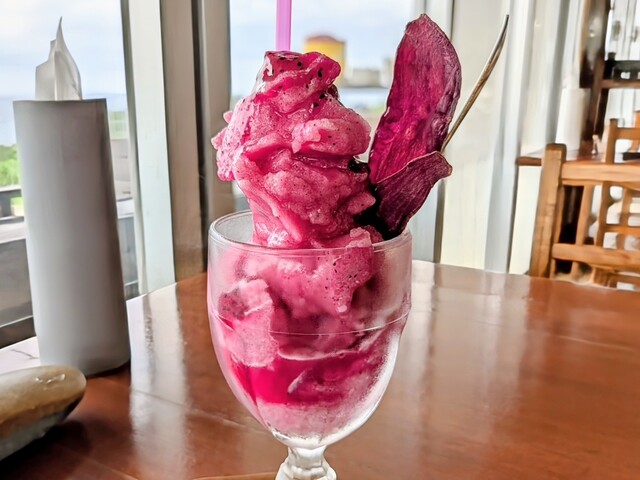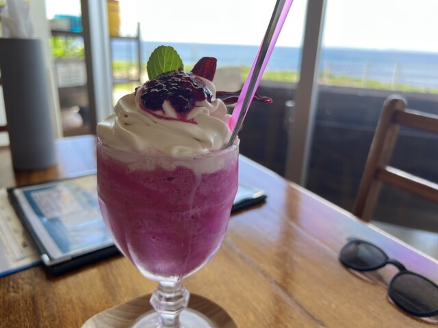 沖縄だからきれいに海が見えるところがいいと思ったけど、そういうお店は沖縄にはいっぱいあるよね〜。そのなかからこちらをチョイス。高台にあって、観光名所のハートロックや万座毛のすぐ近く。...