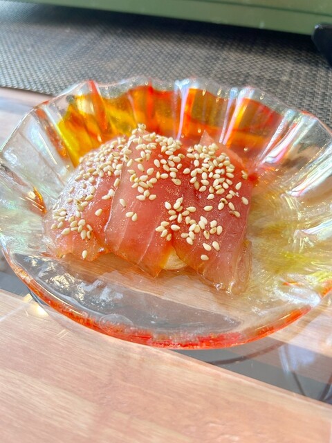 前菜のまぐろは新鮮でとっても美味しい!