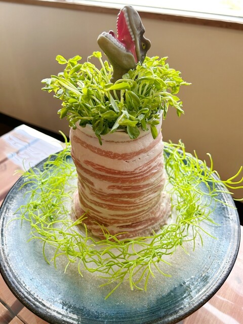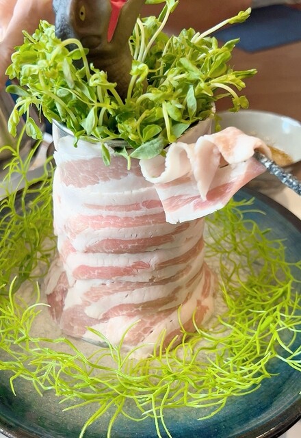 豆苗に巻いてシャキシャキ感とアグー豚のうまみが最高でした!