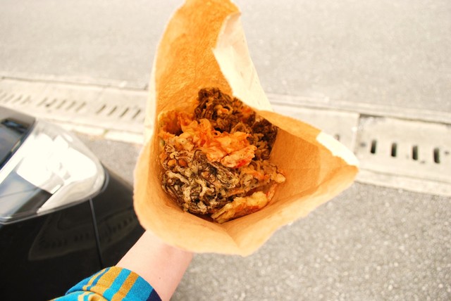 沖縄市泡瀬、泡瀬漁港内にあるお店。 漁港内によくある魚市場&食堂があるようなところで、「天ぷら」も売っています。 公共私設っぽい建物の入口のところに、「天ぷら」の販売コーナー。... 続きを読む»
