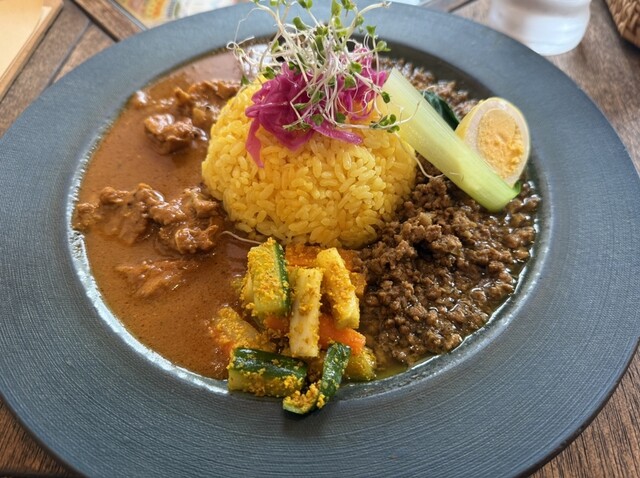土曜日昼の12:50頃に訪問 店内はひと席を残して満席 ギリギリ入れてラッキー 3種のカレーと自家製ハリッサを注文 提供まで20分ほどでした。 このメニューの中で1.2.... 詳細を見る