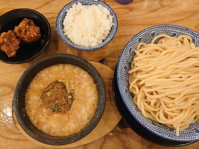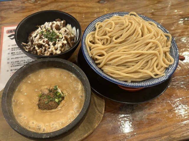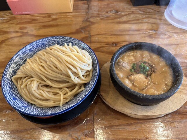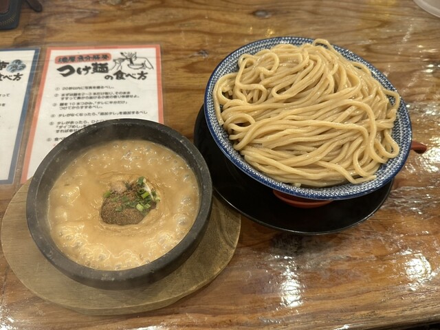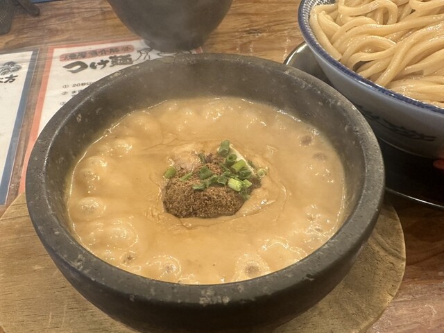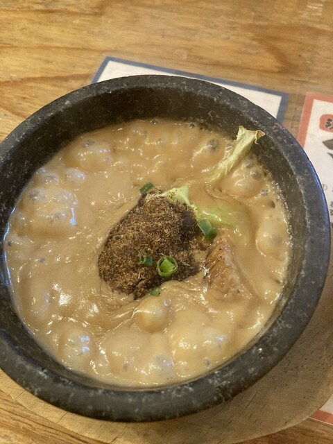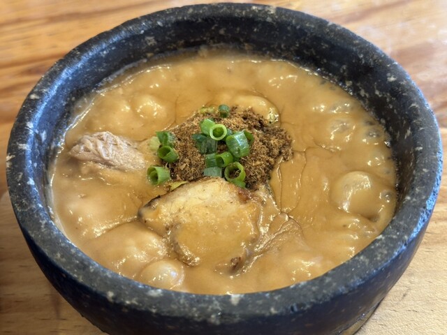 濃厚魚介豚骨タレを石焼で提供 アツアツ