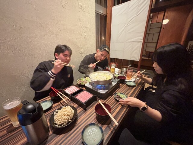 こちらのお店は豚や野菜を「つゆ出汁」につけて食べるスタイルです。...