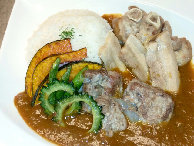 アグー豚のなんこつソーキからとった出汁と野菜のみで作る使ったカレーは自慢の商品です。