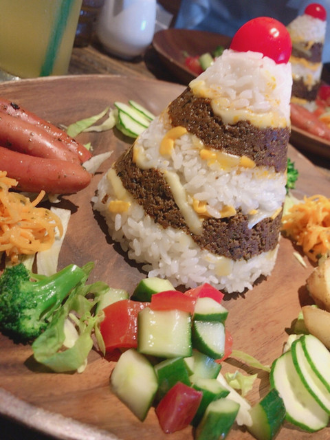 オリジナルのティピタコライスは、ティピーをモチーフにライス・チーズ・ひき肉を層にしたとんがり型のタコライスを野菜達で丸く囲いました。口の中でタコライスと野菜達がMIXされる食感がとっても楽しい!!