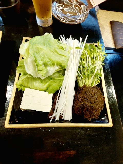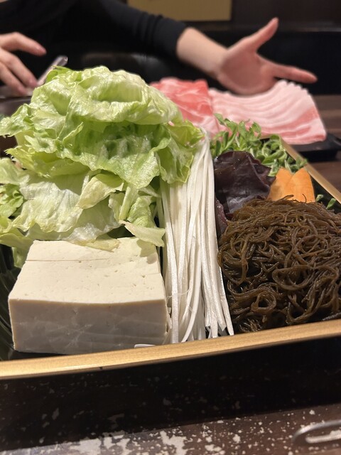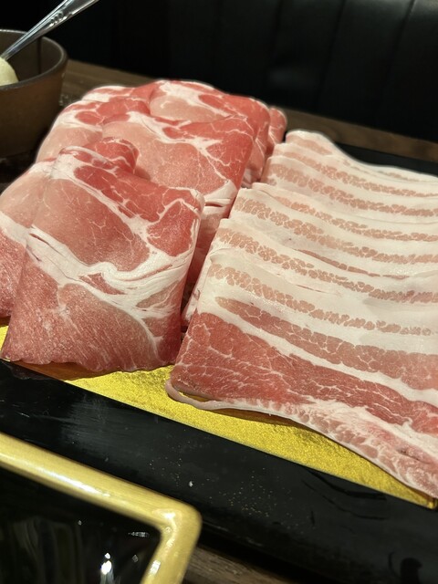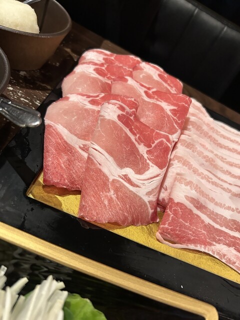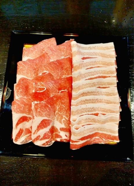 日曜日の18時に予約して訪問しました。沖縄と言えばアグー豚ですよね。その中でもアグー種75%以上の燦オリジナルアグー豚とパイナップル粉を食べさせている甘味の強いパイナップルアグー豚のロースと三枚肉をしゃぶしゃぶでいただきました。その他にレタス、キクラゲ、もずく、豆腐等も追加しました。とても美味しかったですが、一番の感動は自家製ポン酢が人生で一番美味しかったことです。店内で販売していたので、3本お土...