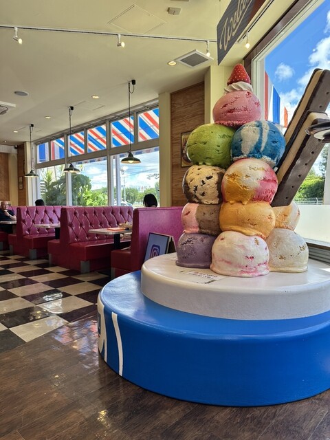 「ブルーシール 北谷店」は、沖縄を代表するアイスクリームショップで、アメリカンと日本の文化が融合した独特の雰囲気が魅力です。店内には色とりどりのアイスが並び、見た目も可愛らしく写真映えします。フレーバ...