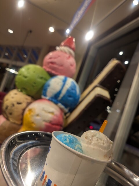 アイスはダブルのコーンでチョコミント・ブルーウェーブを注文。とても美...