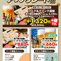 【フードアップグレード】3h食べ飲み放題コース◆グランドメニュー60品以上+追加10種類のフードが贅沢に食べ放題!多彩なドリンクが飲み放題!60品