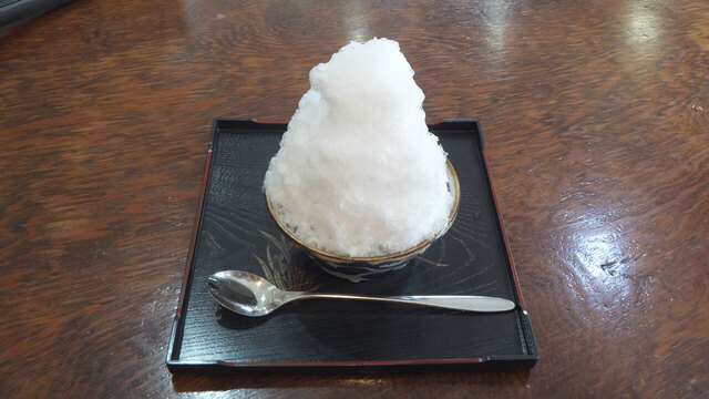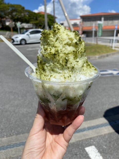 読谷村にある世界遺産の座喜味城跡前に店を構える。ミネラル水を使用した氷はキメが細かく口の中でふわっふわ、サラサラと解け、長時間煮込んだ金時豆の甘さとやわらかな白玉、厳選茶葉を使用した宇治抹茶の渋みが絶妙な組み合わせ。見た目にも美しく、目と舌両方で味わえるのがうれしい。座喜味城跡を見学した後にゆっくり休みながらいただきたい。