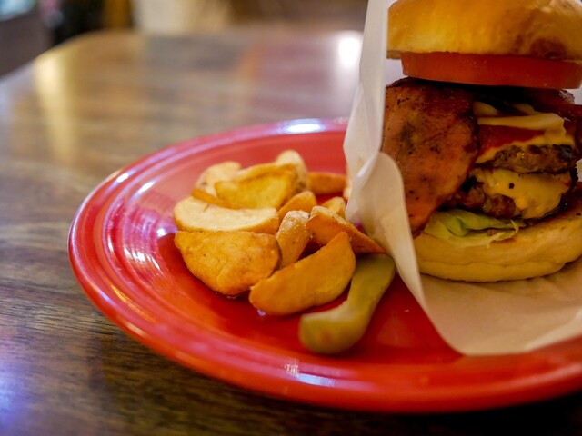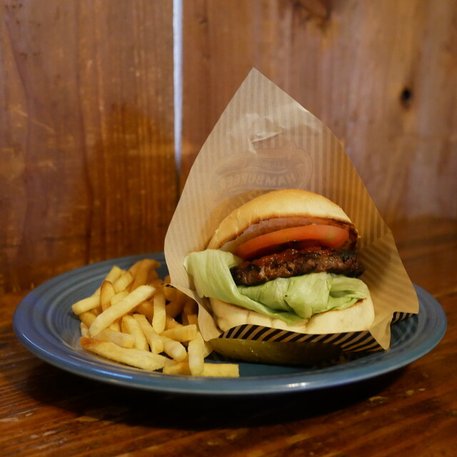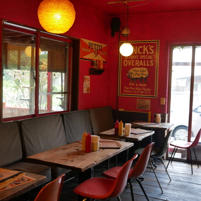 外人住宅を自分達で改装した店内は明るく心地良い。ハンバーガーを愛してやまない店主が作る炭火焼きの手作りハンバーガーは、本場の味を食べ慣れたアメリカ人にも大人気。