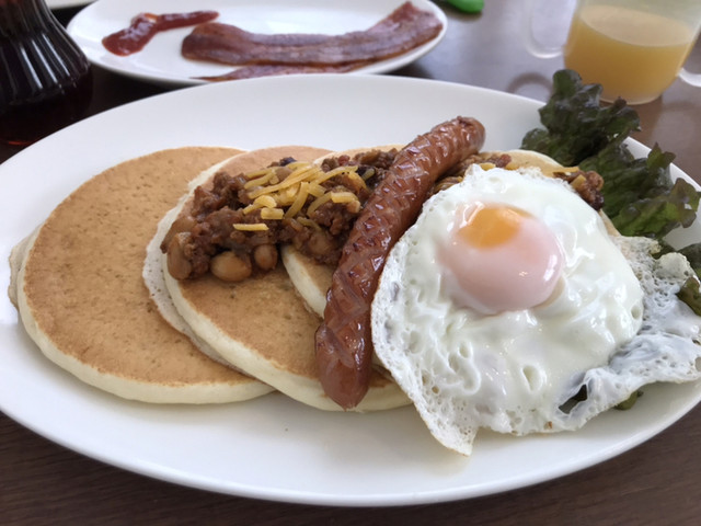 読谷村の海辺、外人住宅が立ち並ぶ一角に、昨年パンケーキ専門店としてオープン。アメリカでは朝食の定番メニューとして親しまれており、パンケーキ生地はフワフワ過ぎず、しっとりとした食感。自然な甘みとほのかな塩味で、ベーコンや卵を添えると食事に、シロップとホイップをかけるとデザートに。通常食べるホットケーキとはまた一味違う、パンケーキの美味しさを味わって欲しい。天気の良い日には、店から徒歩1分もかからない...場所に広がる、読谷の海でリラックスするのもオススメ。