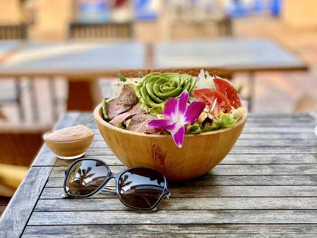 沖縄の絶景サンセットが見える海辺のカフェレストラン。国産牛を使用したこだわり料理が自慢♪