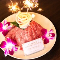 最高級和牛をいただける[食べ放題通常コース]または[食べ放題上コース]にお肉ケーキをお付けします! あまり食する機会が少ない和牛を大切な日に大切な方と是非ご堪能下さい! 記念日やお祝いなどにぴったりなプランです☆