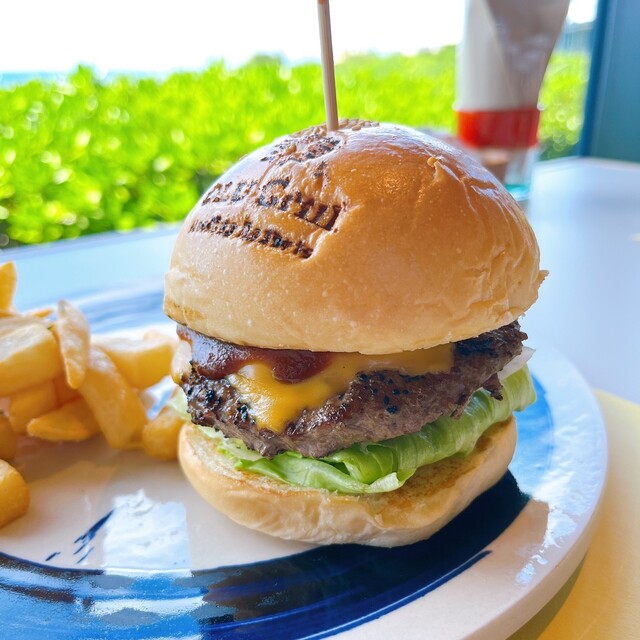 「オールー」とは沖縄の言葉で「青い」という意味。どこまでも続く青い海を臨むダイニングでは、泡盛や黒酢を合わせた沖縄ならではのオリジナルソースで味わう薪焼きのステーキにシーフード、ランチでは肉厚のハンバーガーが楽しめます。