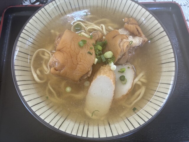 ソーキすば中(¥1,050)、クーブイリチー(¥300)を注文。 クーブイリチーは沖縄の方は誰しも馴染みのあるレベルの煮物のようなもので、昆布や豚肉、シイタケなどが入っていま... 詳細を見る