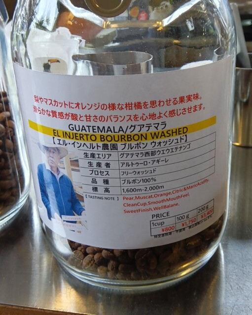 グァテマラのエルインヘルト農園 ブルボンウォッシュト浅煎り HOT 税込 800円