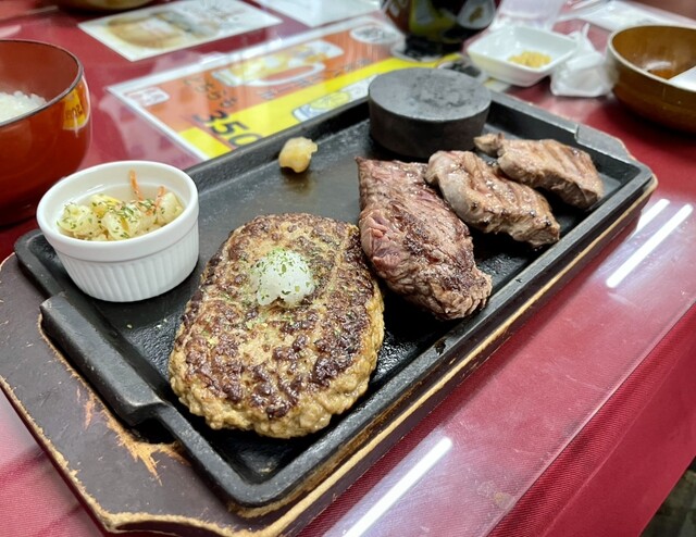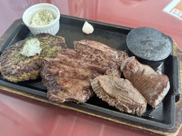 (ハンバーグ150g+県民ステーキ100g+上タンステーキ100g)+県民ステーキ100g追加