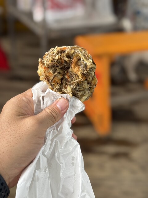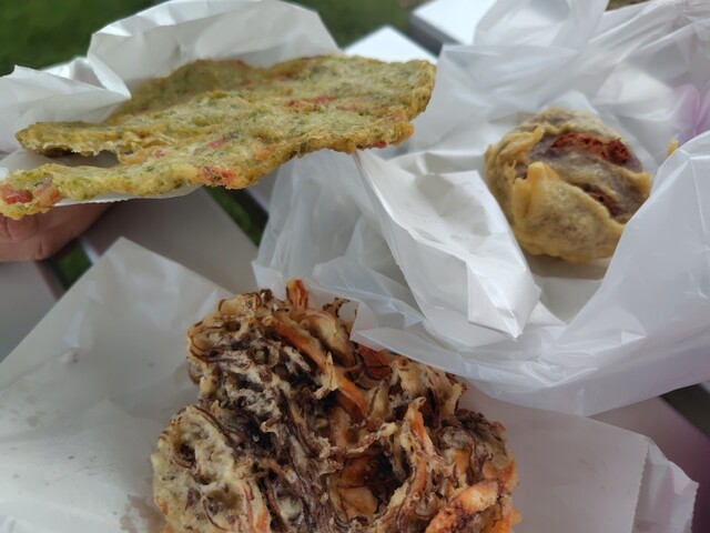 ■注文内容 さかな、アーサ、田うむにー 税込各120円 ■感想 前レビューの中本サンから少し車で移動 といっても周囲1.7kmの島なのですぐです こちら大城サンも天ぷ... 詳細を見る
