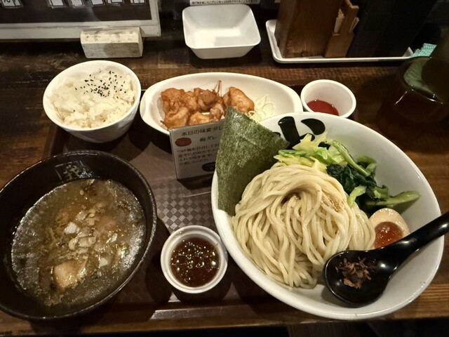 前回一人でつけ麺定食大盛り(唐揚げ)を注文して、ちょっと多過ぎて後悔したので、同じメニューを妻と小学生の娘3人でシェアで頼みました。 家から車で行ける範囲にこの店があったら、月一... 詳細を見る