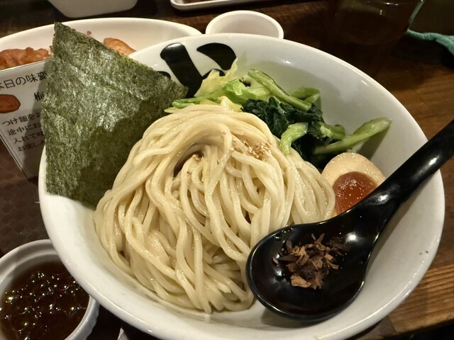 細いけどもっちりした麺とあっさりしているけどコクがあるつけ汁、味変用のつけ汁が定期的に変わるのも楽しみです。娘が美味しいといつもより食べたので、替え玉を...