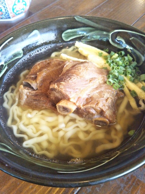 中城城址へランでやって来てその帰りにランチ場所を物色、ここを発見。沖縄そばの真髄を見た気がする。まずスープの鰹節出汁がたまらない。それに太めのちぢれ麺。しっかりとした歯応え。護佐丸そばは特大そーきと三枚肉で食べ応えもたっぷり。ラーメンやうどんそばとは違う分野の麺。今度は沖縄そばの食べ歩きをやってみたくなる。