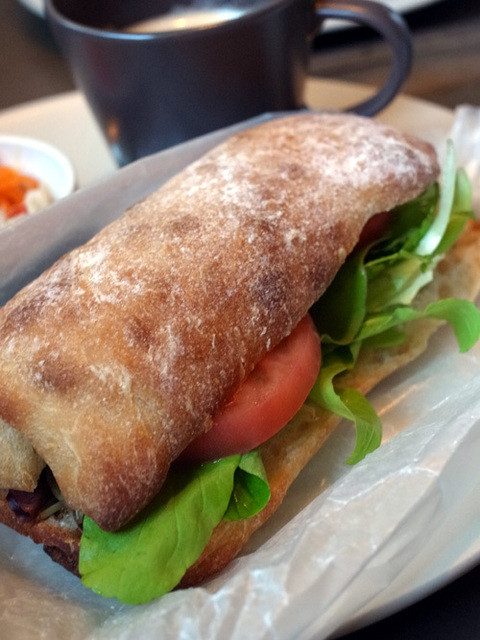 普通の一軒家を改装した店内はお洒落で、入り口でパンの販売、左側がオープンキッチンのようになっていて、奥に席があります。