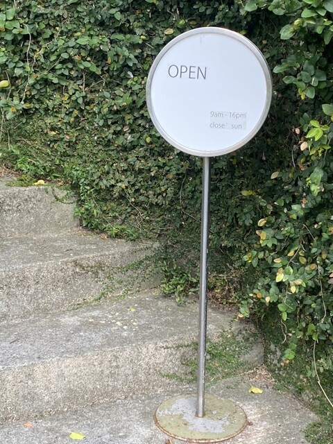 地図通りに行って車を止めて歩いて道に迷ってると小さな看板を発見!