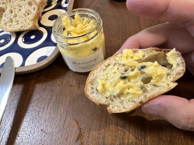店内席で大葉とゆずバターのサンドを