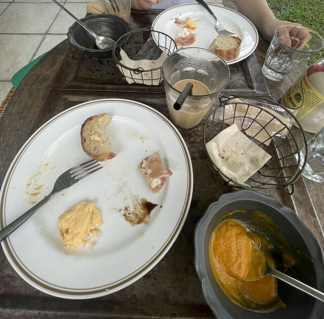 天気はイマイチだったけど折角なのでテラス席へ。