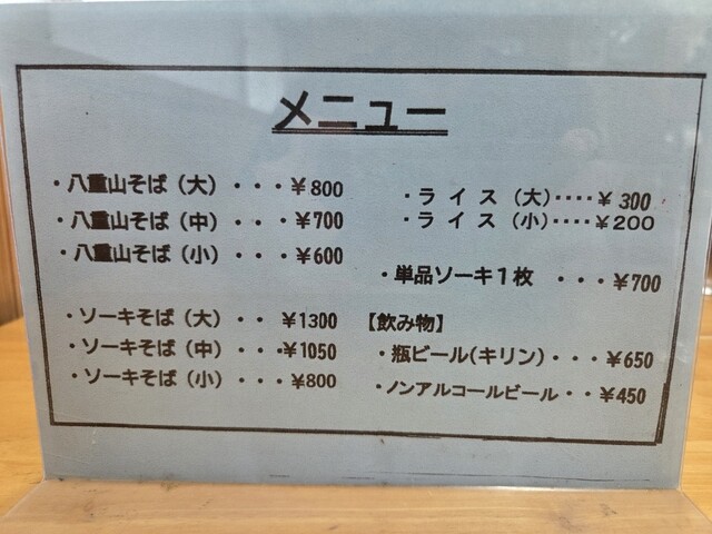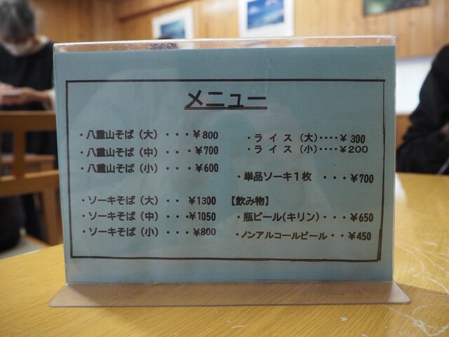 土曜日の丁度お昼時でしたので駐車場には沢山の車、しかしながら記帳後15分弱の待ちで入店、単品ソーキを頂きたかったので八重山そば小...