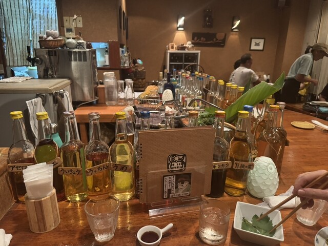 19:06 森の賢者に到着。 食べログ3.50、当日にキャンセル待ちに電話予約した。 蕎麦茶 550円、蕎麦茶お代わり150円 自家製島産果実 550円 じーまーみ豆腐の揚げ出し 550円 島素材の天ぷら 時価(2人で1,800円程度) 石垣牛のローストビーフ 2,350円 八重山... 詳細を見る