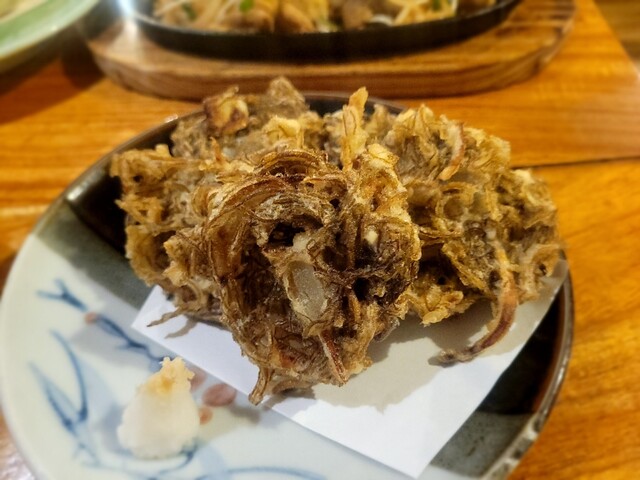 祝日1900に予約して向かう。 店内はテーブル以外にも奥に座敷もありとても広い。 でもほとんどが予約されてるようで座席の壁には名前が貼ってあった。 人気店だ。。 お腹も減っているのでいろいろと注文してみた。 『ソーメンチャンプル¥680』 ゆでたソーメンを水洗いして油をまぶして炒めるらしい。 いい出汁と油の融合が美味い。 炒めた方が好きかも。 たまねぎ、にんじん、にらが... 詳細を見る
