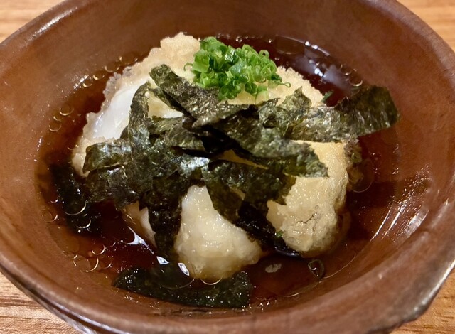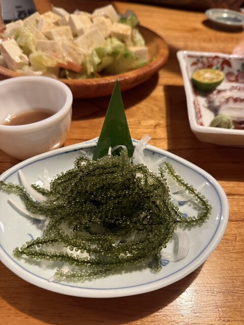 もずくの天ぷら、麩チャンプルー、アダンの天ぷら、ジーマーミ豆腐の揚げ出しなどを注文。
