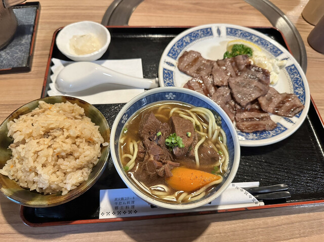 牛そばが食べたくて地元の人に色々聞いてみたところ、こちらのお店が気になって来店 元々は牛ステーキや牛タンが有名なこちらのお店 だけどあえてそこで牛そばを食べるというが良き 牛タンランチ(大) ¥2,230 内容は牛そば(中)、牛タン焼き、ご飯、漬物 注文はテーブルにあるタブ... 詳細を見る