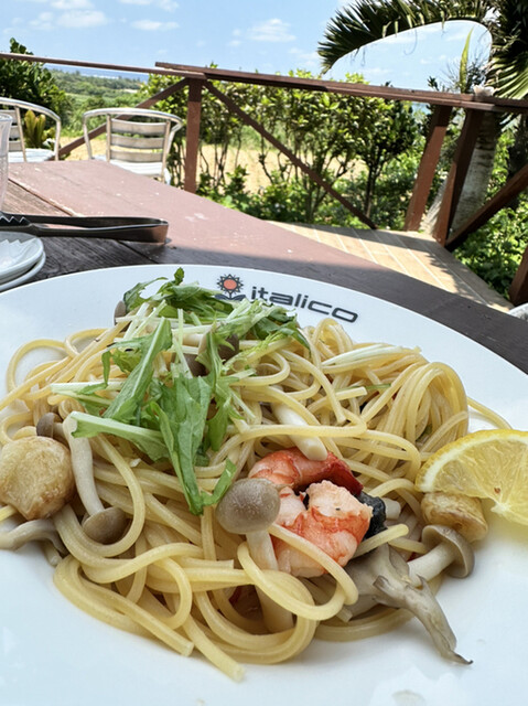 崎枝地区までクルマをとばし、ステキなイタリアンでランチ。真夏の晴天ランチタイムには最高の眺望でした。お店からは2方向でヤエヤマブルーの海が見えて、このロケーションにお金を払う価値が... 詳細を見る